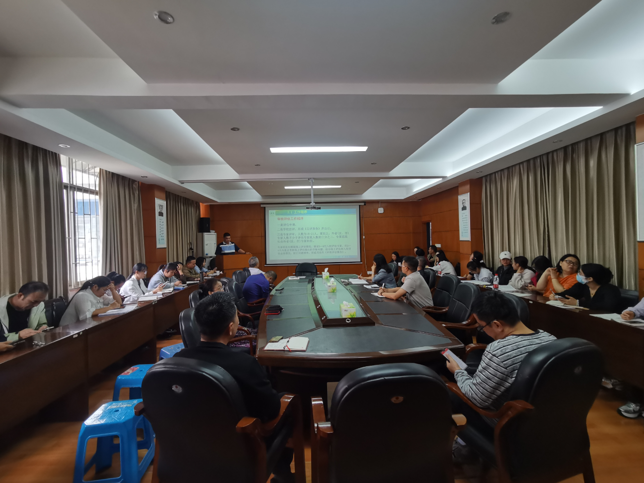 副院长王泳兴对本次本科教育教学审核评估与历次本科教学评估的区别、本次审核评估的流程以及学校迎评工作方案进行了讲解,并对本次审核评估指标体系进行了逐条详细解读。