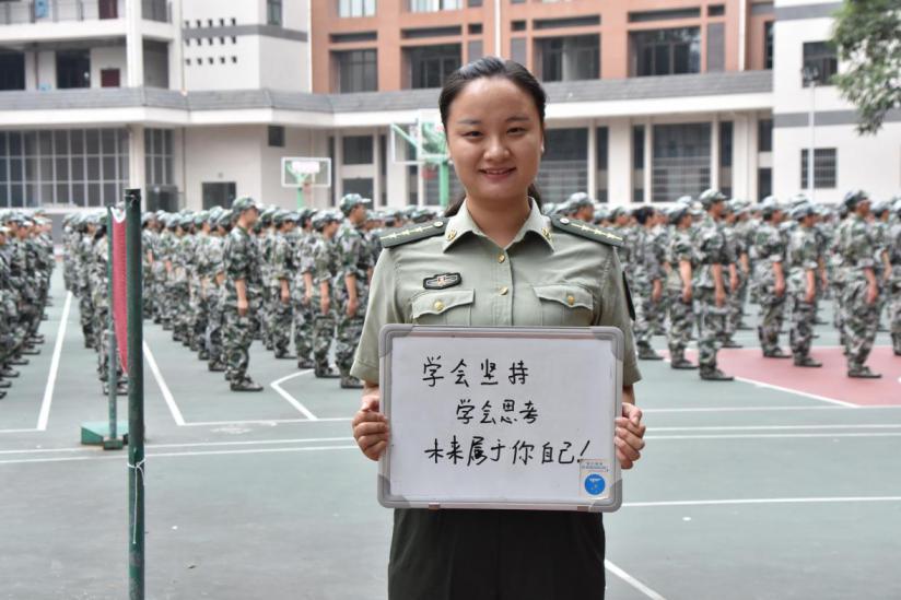 “我希望我所带的每一位学生都能够通过军训,迈出人生独立的第一步,明白将来的路是需要自己独自去面对的,任何困难、挫折,只要勇敢去面对,用心去思考,总会有解决的办法。学会去适应任何一种环境、学会照顾好自己、学会去换位思考、学会感恩、学会独自面对一切。军训能给大家的优秀品质有很多很多,都是能够受用终生的。对每一位参与者,包括教练员来说,都是一次难得的实践课。我也相信,每一个孩子都有属于他自己的优点,只要得到合理的发挥,四年后,一定能够成为自己最初想要变成的样子!”