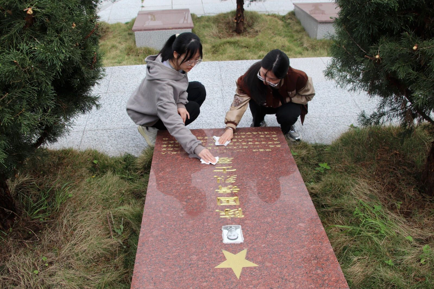 仪式结束后,全体党员来到烈士英雄纪念墓群,擦拭墓碑、献上鲜花。