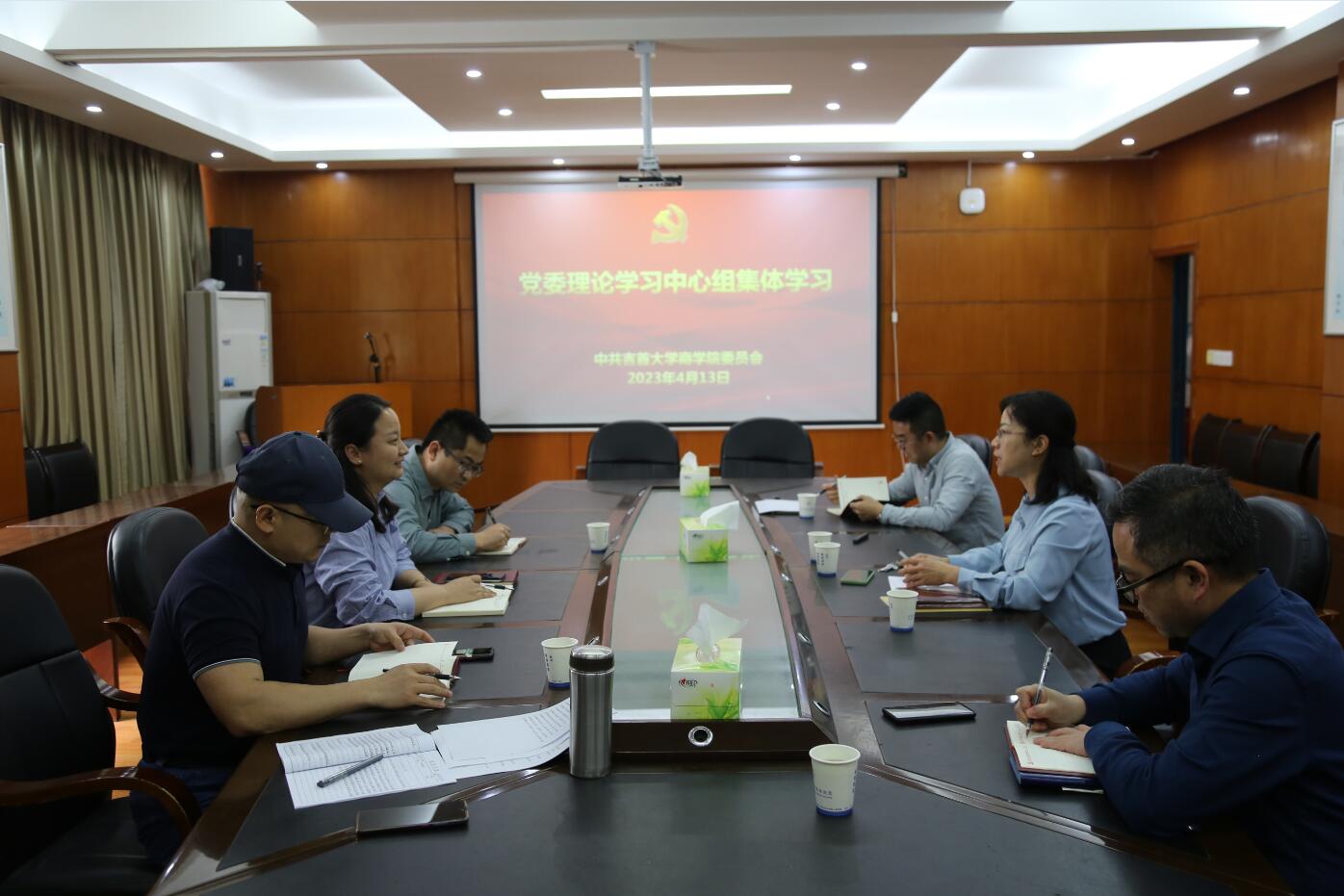4月13日下午,学院党委理论学习中心组在学院会议室举行集体学习,本次集体学习“第一议题”学习内容为《坚定不移贯彻总体国家安全观》。学院全体党委委员参加了学习。本次集体学习由院党委书记宋洁主持。