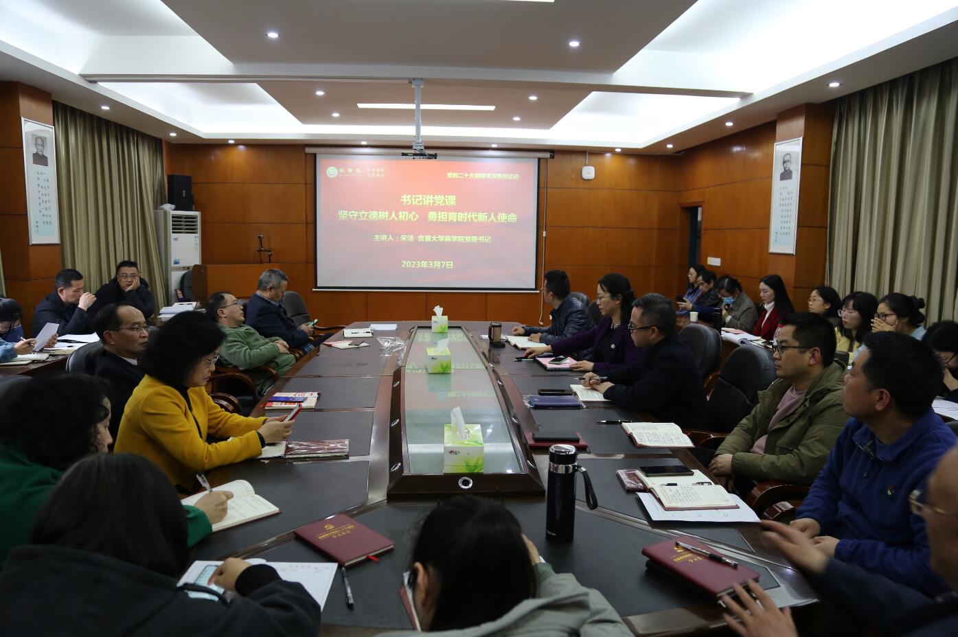 为深入学习宣传贯彻党的二十大精神,强化师德师风建设,3月7日下午,院党委书记宋洁在院会议室为学院全体教师上了一堂题为《坚守立德树人初心,勇担育时代新人使命》的党课。