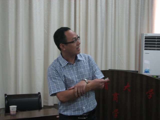 - 2013年9月18日上午11:00--12:30,中山大学管理学院会计学博士舒伟为我院师生作了一堂题为“内部控制实证研究的现状及展望”的精彩讲座。讲座由院党总支书记张生强主持,我院会计系部分教师、会计学专业部分硕士研究生及本科生听取讲座并进行了讨论。