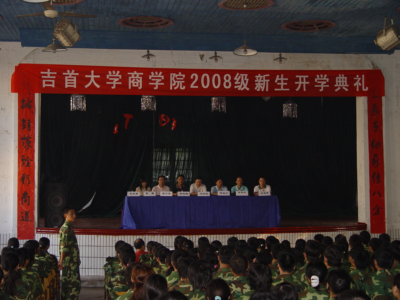 2008年9月13日上午,我院在大田湾校区礼堂召开2008级本科新生开学典礼。院党总支副书记彭业锦主持大会,院长冷志明教授作了院情报告,副院长李政忙作入学教育,老师代表张霞、军训教官柴周兰、老生代表周雯琦、新生代表张雷先后发言。副院长蒋才芳及2008级各班主任参加了大会。随后专业负责人张寒阳、张霞、龙海军等老师分别给各专业新生进行了专业教育。