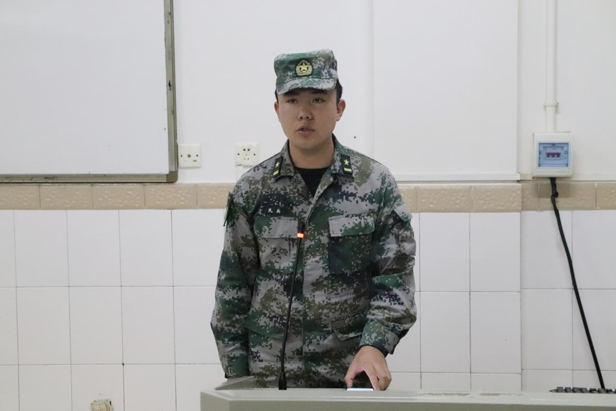 袁梓翔做征兵动员。他对2020级全体男生提出了三点要求,一是树立意识、居安思危;二是把握机遇、锻炼自我;三是自强不息,投身国防,并勉励广大青年学子主动承担责任,激发爱国热情,投身国防事业。