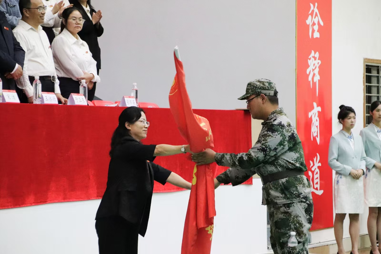 为了让新生们更快地找到归属感,仪式中进行了佩戴校徽、诵读院训和颁授班旗三个温馨而有意义的环节。校徽和班旗不仅代表着“吉大人”的身份,更承载着“凤飞千仞,薪传八方”的办学精神,传承着吉大人回报社会和国家的终极价值追求。希望新生们能尽快融入大学生活,明确目标使命,做“精诚锤炼、诠释商道”的积极践行者,勇当新时代的职业经理人,为实现中华民族伟大复兴贡献我们商院学子的青春力量。
