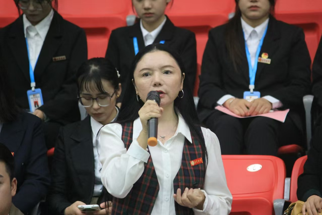 经济系主任李琼教授作为教师代表发言,她深情讲述了自己对教育事业的热爱与执着,并鼓励新生们珍惜大学时光,追求卓越;学生代表彭雅希、孙墨焓和单文琦表示他们将传承吉大精神,勇担时代重任,为强国建设、民族复兴贡献自己的青春力量。