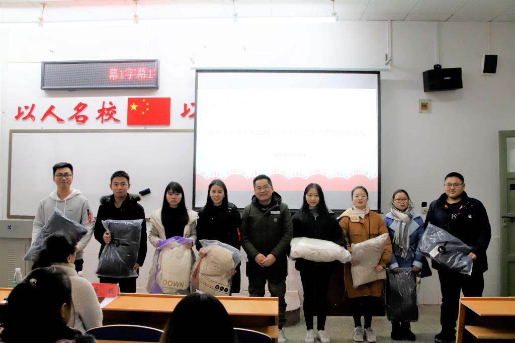 12月27日,我院于砂子坳校区第三教学楼3202教室举行2018年“暖冬行动”生活物资发放仪式,我院党委副书记胡锦湘、团总支书记唐琪出席,获得物资的所有学生参加。仪式由院学工办副主任陈洁主持。