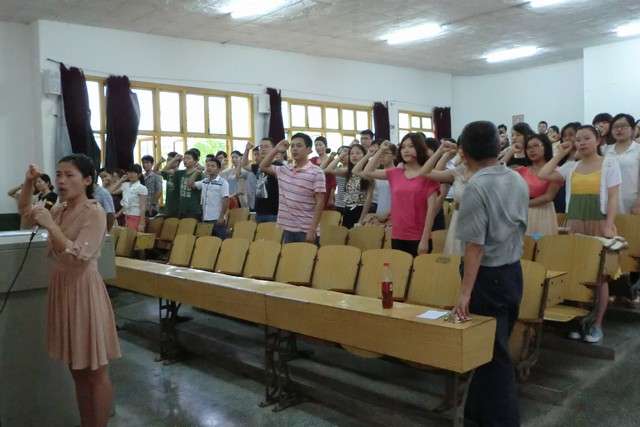 2013年5月24日晚,中共Williamhill中文总支委员会在砂子坳校区1206教室举行了新党员的宣誓仪式。仪式由院学工办主任胡锦湘老师主持。学校关心下一代工作委员会常务副主任、校教学督导团团长汤人翰,院党总支书记张生强,院总支副书记钟高峥,院总支委员、院学工办主任胡锦湘参加了本次活动。