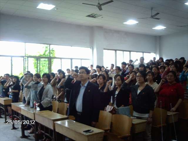 5月25日下午,原经管系主任、离休教师李泽南应邀在第三栋教学楼3002教室为我院2012届毕业生党员上了一堂以“牢记入党誓词,以不变应万变”为主题的党课。院总支成员、学工办主任胡锦湘以及2012届全体毕业生党员参与了本次活动。