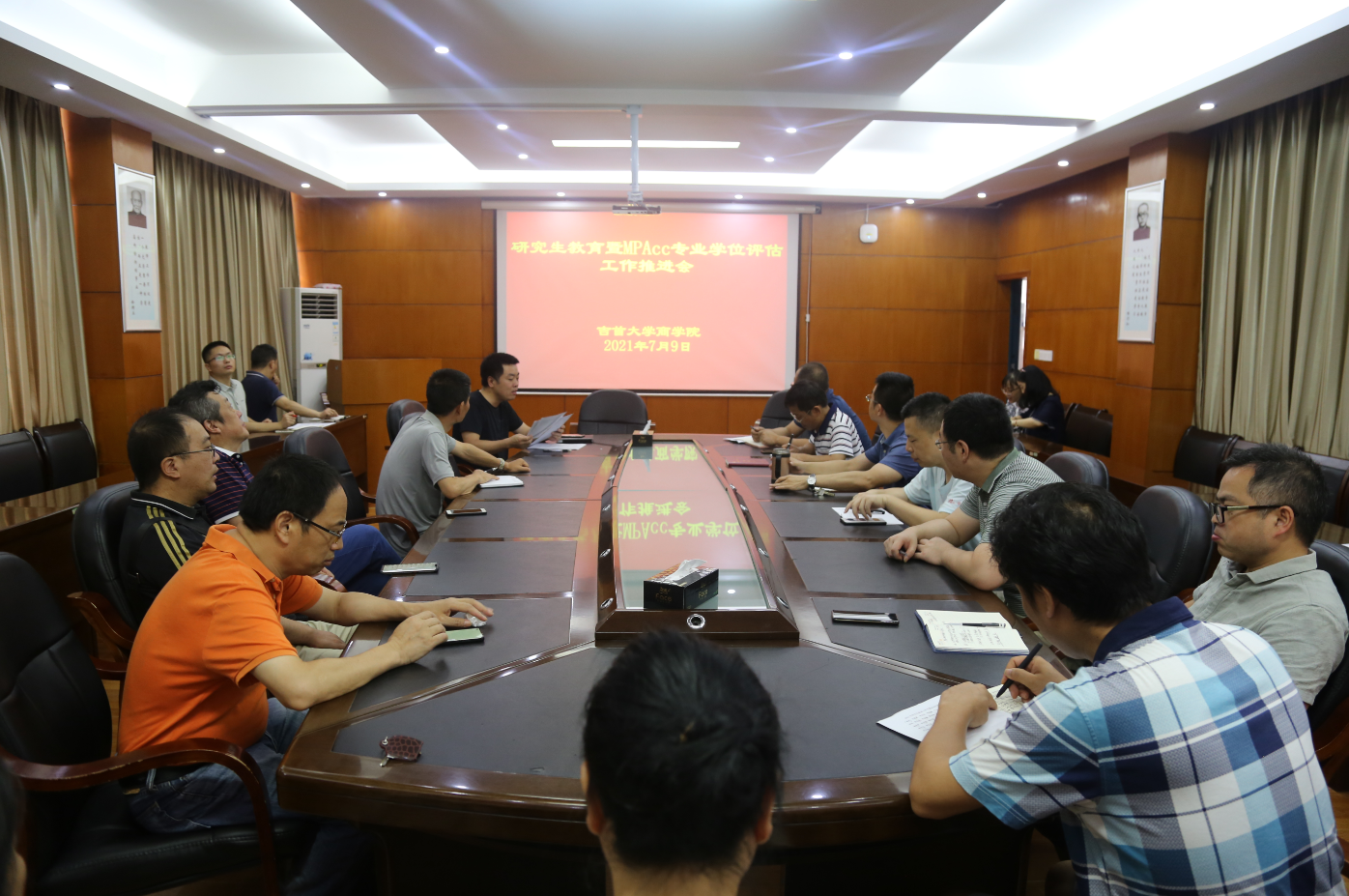 7月9日上午,学院在院会议室举行研究生教育暨MPAcc专业学位评估工作推进会。院党委书记李启贵,院党委副书记、院长丁建军,副院长龙海军、张琰飞和全体研究生导师参加了会议。
