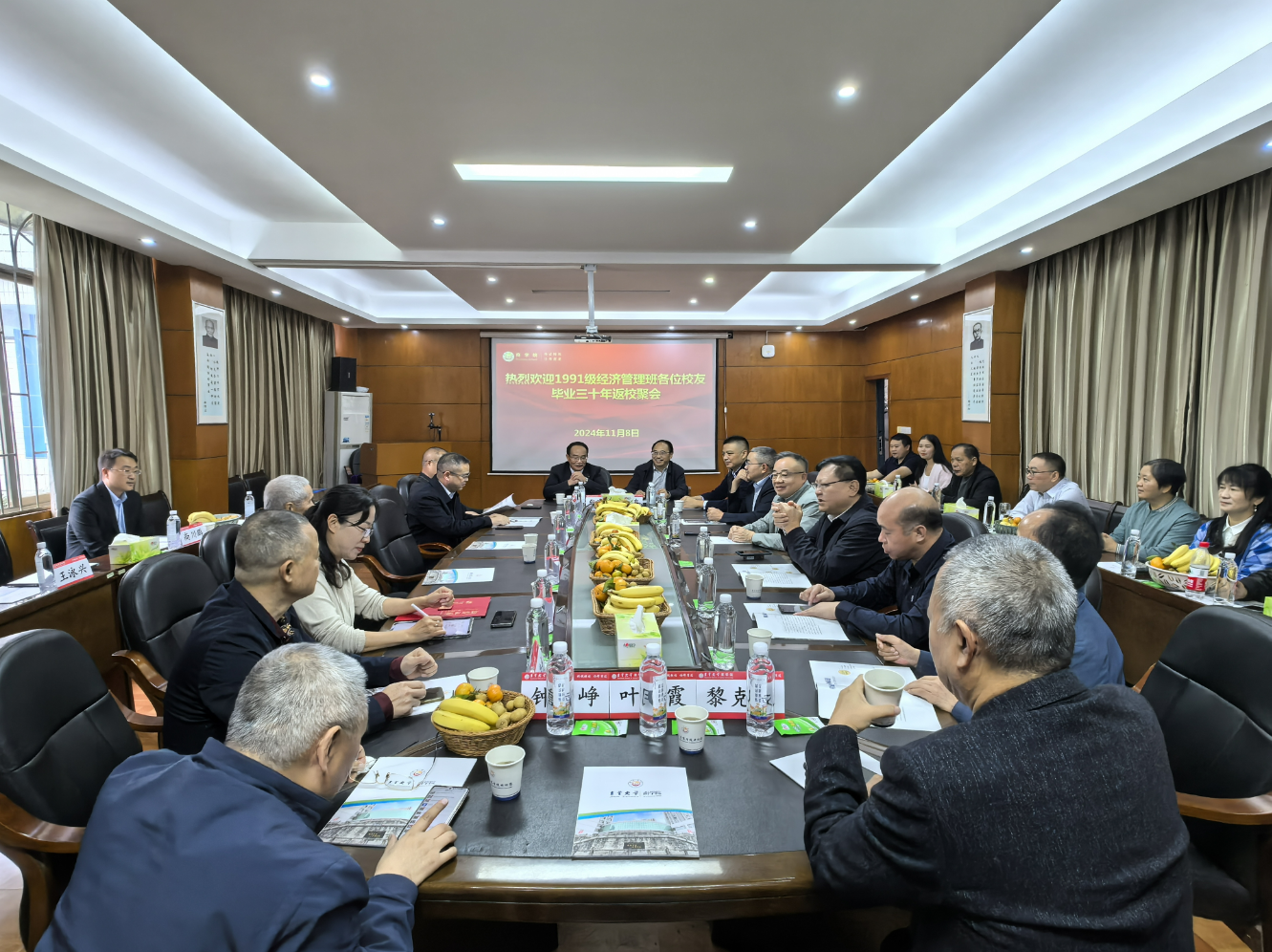 1991级经济管理班各位校友向老师们报告了三十年来自己在外拼搏的人生经历和成长故事,并追忆了自己在校期间学习生活的点点滴滴,纷纷表达了对母校和各位老师悉心培养的感激之情。各位老师深情回顾了与1991级经济管理班同学们相处交流的往事和趣事,勾起了大家满满的回忆,说到开心处,大家不禁开怀大笑,聊到动情处,大家不免眼眶通红。