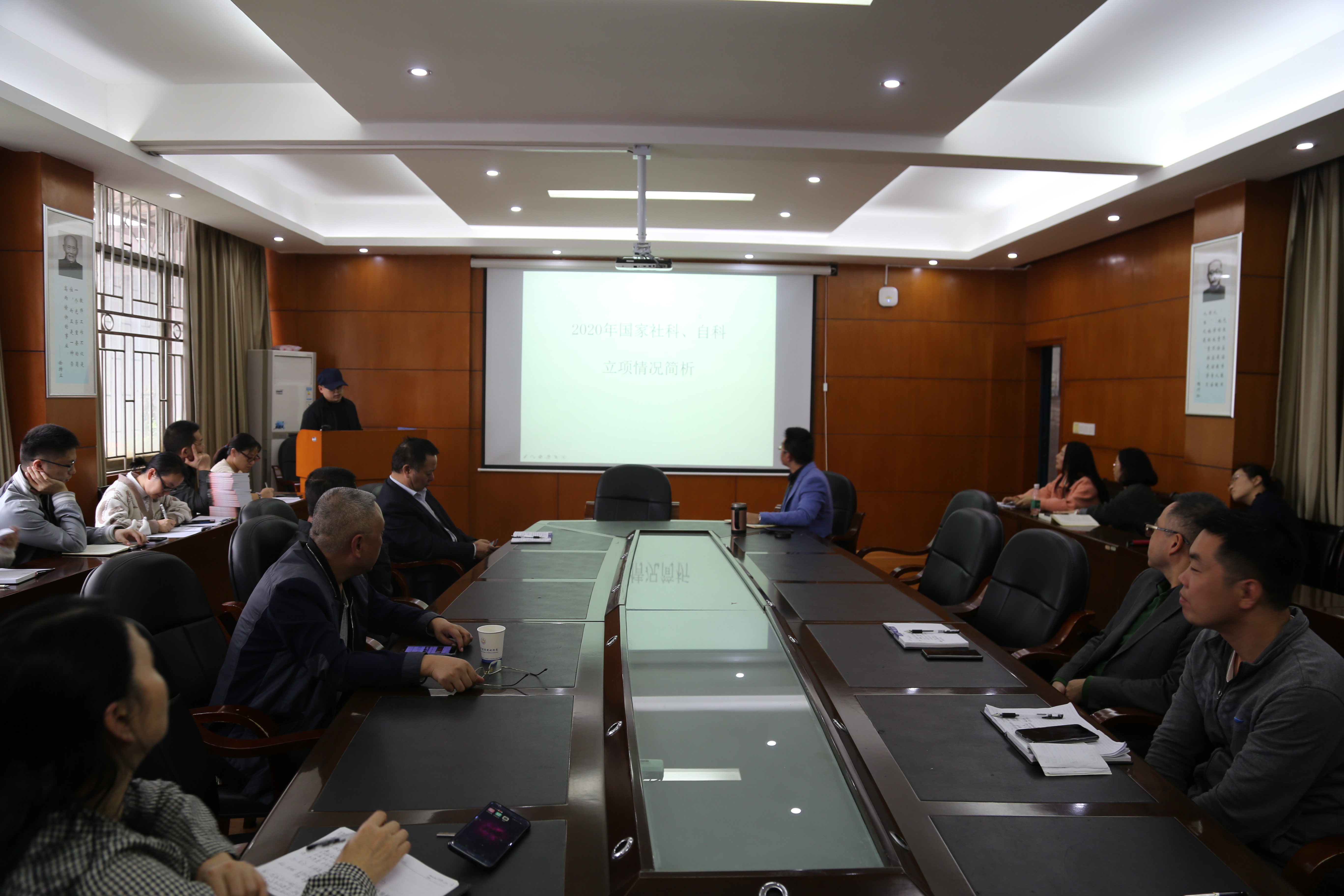 随后,院学科办主任袁明达利用PPT对2020年国家社科基金和国家自科基金立项情况进行了详细介绍,并对各立项项目的选题进行了专业分析。