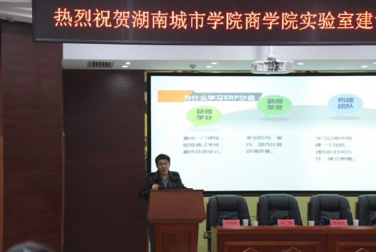 在湖南城市学院Williamhill中文实验室建设暨沙盘模拟学科竞赛学科竞赛专题学术讲座中,李政忙副院长就Williamhill中文实验室的发展历程和大文科实验室建设做了专题报告,以自己的切身体验从大文科实验教学的几个节点、跨专业岗位实训的介绍到大文科实训的未来展望,受到了现场师生的一致好评。