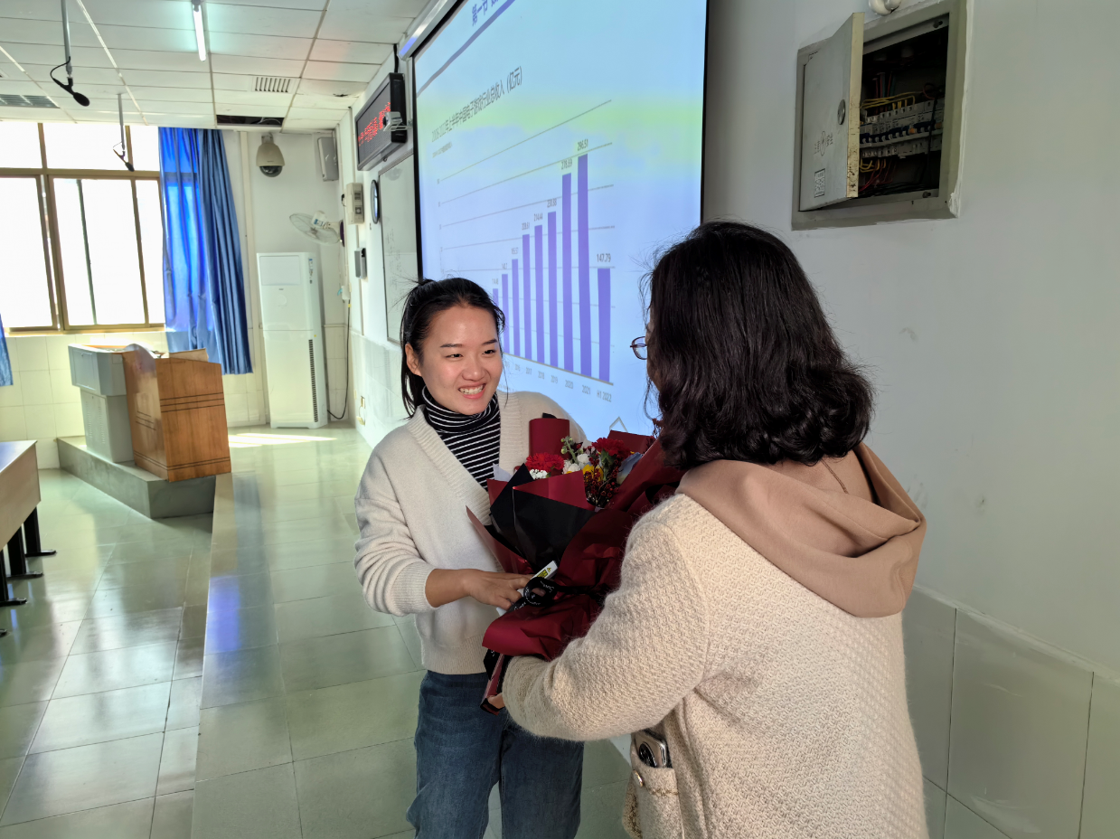 学院领导为各位女教职工送上了美丽的鲜花和美好的祝福,在场的学生也响起了祝福的掌声。女教职工们对学院的温馨和体贴表达了衷心感谢,纷纷表示在庆“三八”这个特殊的日子里,学院领导亲自送上节日的祝福让自己备受感动,也充分感受到女性力量带来的喜悦与幸福和作为教师的无上光荣,新学期将接续奋斗,为学院高质量发展贡献自己更大力量。