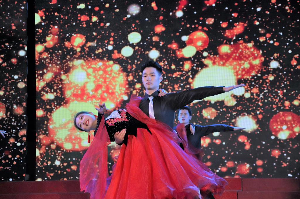 首先,进行了交谊舞比赛。伴随着舞台灯光和背景音乐,从初赛晋级的12支班级舞队依次上台表演。他们的舞姿或热情奔放,或清新婉约,或精灵百变,或深情动人,赢得观众们的阵阵喝彩、掌声连连。现场十分活跃。