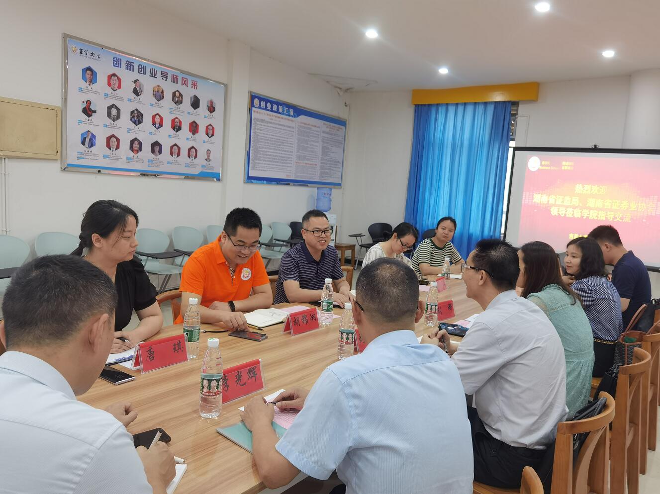 学院各位老师则向来访专家领导详细介绍了学院各专业金融投资课程开设、金融投资学科竞赛、金融投资师资培养等方面的情况、成果和未来双方校企合作共同提升学生金融投资素养的思路,并表示一定会努力配合湖南省证券业协会,尽快向学校领导和相关部门报告,保障湖南省“投资者教育基地”的暑期建设。会谈结束后学院各位老师还与来访专家领导实地查看了湖南省“投资者教育基地”建设的场地,并初步敲定了具体建设方案。