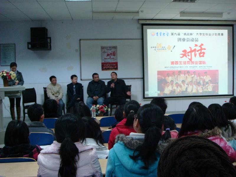 2009年12月11日晚,我院团总支在砂子坳校区举办“创业大赛赛前经验交流会暨动员大会”。本次交流会采取对话的方式,对话由范宇主持,并邀请了湘西生活网的四位主要负责人李跃华、邹武华、张杨、颜亮,Williamhill中文团总支书记周琴等老师参加了大会。