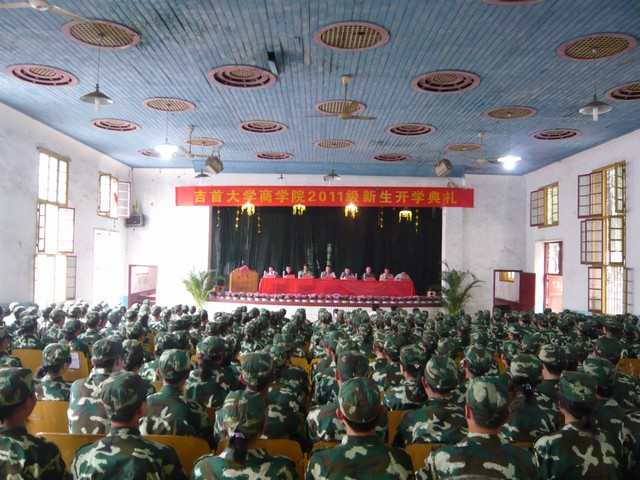 2011年9月27日下午,我院在大田湾校区礼堂举行2011级本科新生开学典礼。院长冷志明教授、院党总支书记张生强副教授、院党总支副书记彭业锦副教授、院长助理彭耿副教授、院长助理龙海军博士、院长助理丁建军博士、经济系系主任张寒阳副教授、国际经济与贸易系系主任于正东副教授出席典礼并在主席台前排就座,教师代表彭学明教授、杨静老师以及我院2011级新生班主任也出席了典礼。典礼由院党总支副书记彭业锦副教授主持。