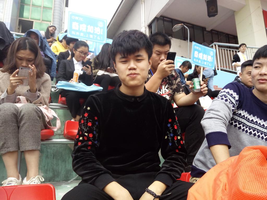 在现场为我院运动员加油的杨智茁,来自17级会计二班。在问及他当拉拉队的缘由时,他谈到作为一名团学会干部,更应该争做表率,尽己所能,积极支持和参与我院的各项活动。他说:“希望我院运动员能取得好成绩,无论结果如何,运动员们都尽了最大的努力,比赛重在参与,即使他们不是每个人都能拿到第一,也一样非常了不起。”他表示他最期待的项目是10×50米接力跑,因为他很喜欢那种一群人为一个目标而努力的感觉。他认为接力赛不仅仅考验个人的速度与爆发力,更考验一个集体的默契与综合实力。