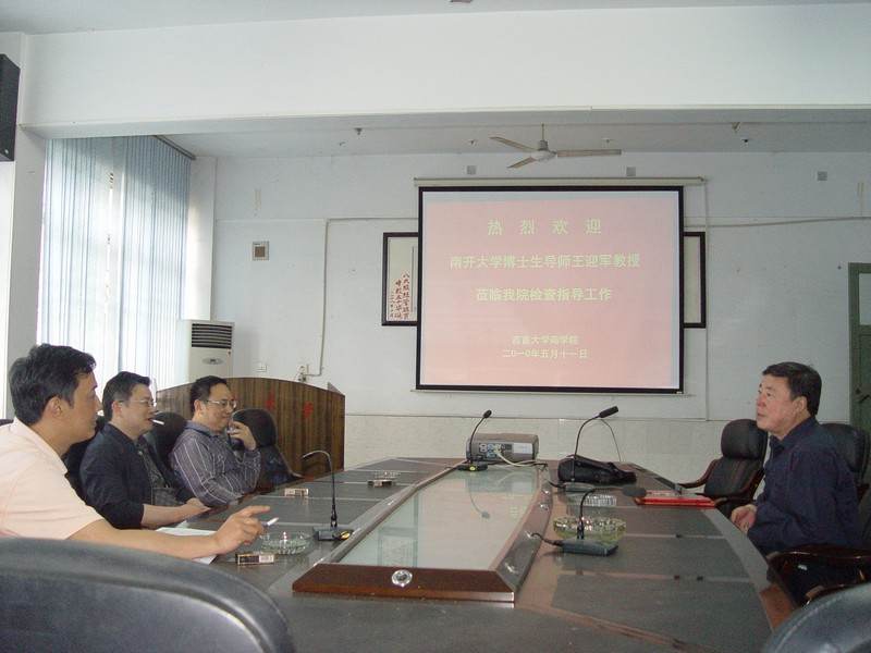 受学校邀请,2010年5月11日上午10点,南开大学博士生导师王迎军教授来我院指导学科建设工作。在院会议室,院长冷志明、院党总支书记张生强、副书记彭业锦、学院工会主席钟高峥、国际经济与贸易系主任于正东等与王迎军教授进行了交流。冷志明院长首先介绍了学院发展的基本情况,随后王迎军教授对学科专业建设等提出许多建议,特别对我院申报MBA教育进行了认真的指导。