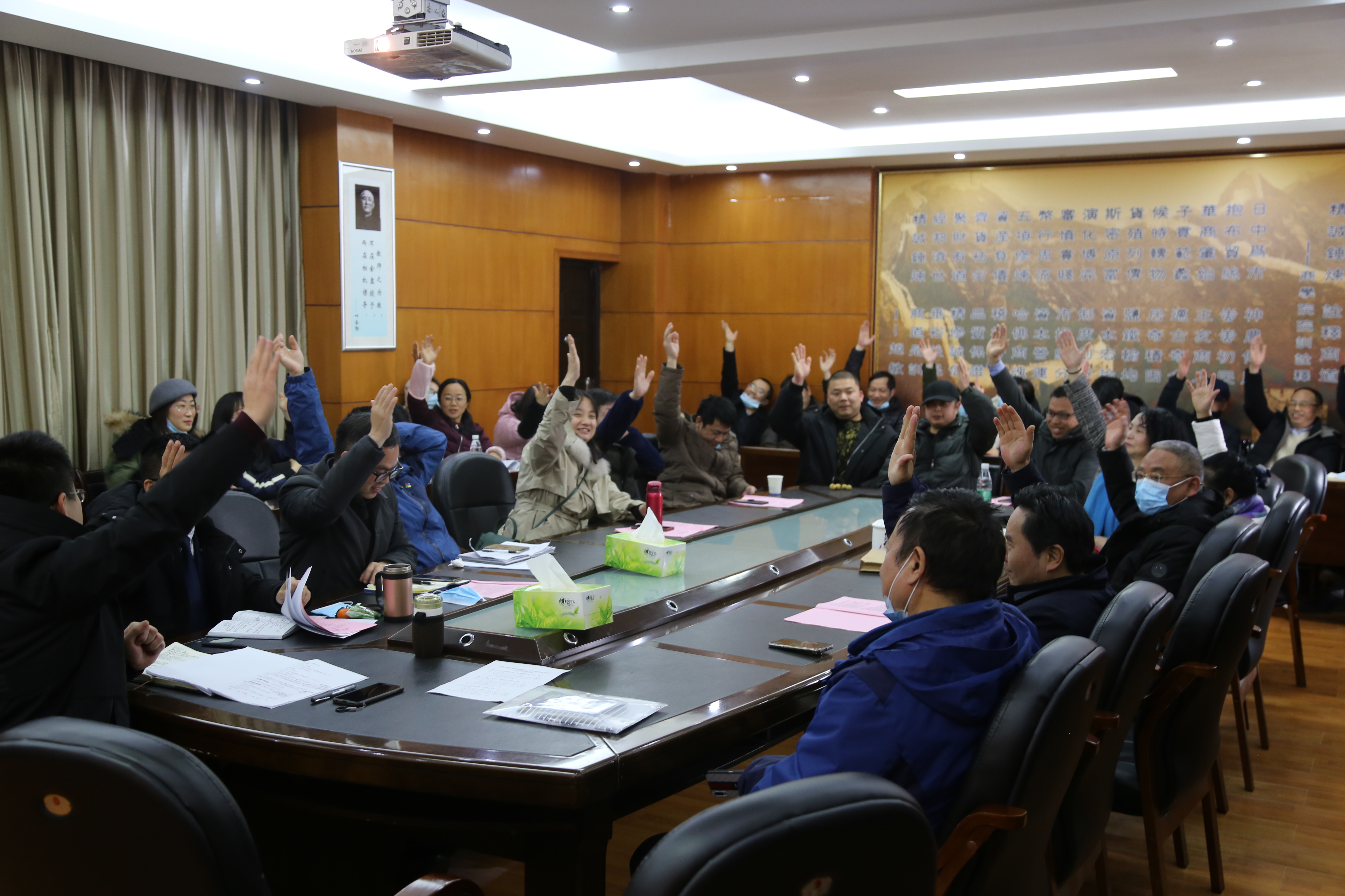 全体参会教职工通过举手表决方式通过了《院长工作报告》和《工会工作报告》以及关于增补王泳兴、朱朴义、薛玫三位同志为Williamhill中文分工会委员的决议。