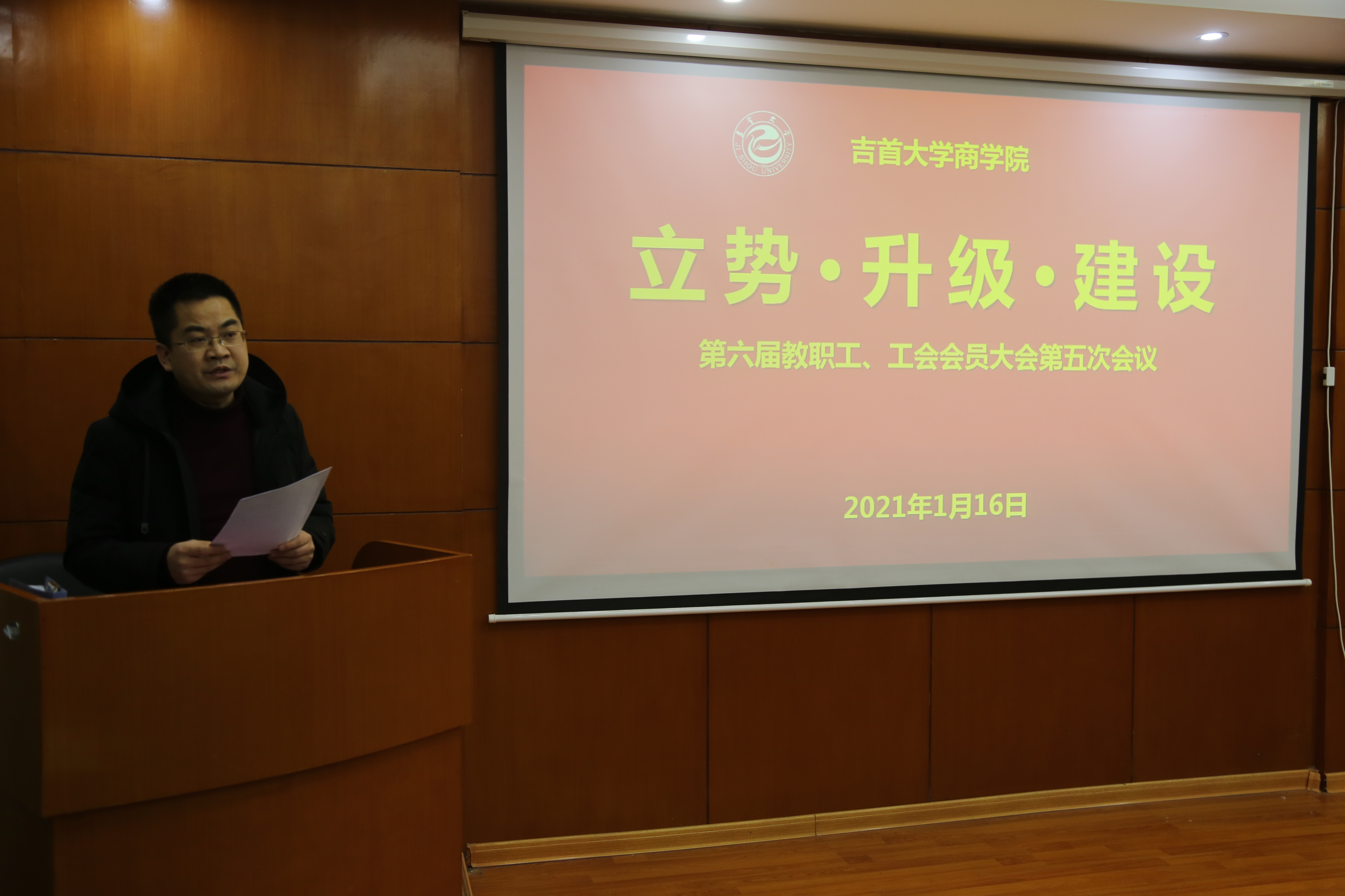1月16日上午,学院第六届教职工、工会会员大会第五次会议在院会议室召开,校工会常务副主席肖松到会指导,全院教职工参加了会议,会议由院党委副书记、院工会主席胡锦湘主持。