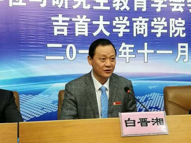 我校校长白晋湘发表了热情洋溢的致辞,他在致辞中对各位领导和全省22所高校参会嘉宾的到来表示热烈欢迎,他从办学历史、办学规模、办学层次、办学成绩等方面介绍了我校的办学情况,同时希望各高校各位参会嘉宾通过本次会议的交流探讨,从而推动会计学科、专业的研究更上一层楼。