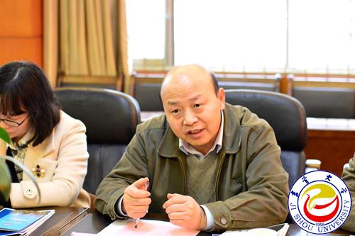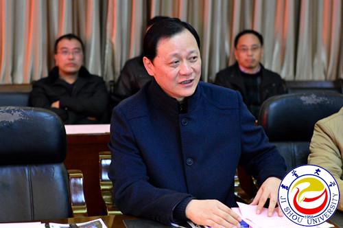 校长白晋湘致辞。他对郭昊、周尚文一行来校指导工作表示欢迎和感谢,并以党和国家领导人非常重视、拥有全国高校唯一的黄永玉艺术博物馆和沈从文纪念馆、国家社科基金排在全国前列这三大亮点,以拥有院士工作站、博士后流动站、服务国家特殊需求博士人才培养项目为代表的完整教学科研体系,入选中西部高校基础能力建设项目,服务武陵山区精准扶贫这三大标志,介绍了学校的基本情况。