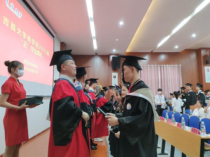 2022届本科生王萃、谭雪霏、王湘茹作为线上毕业生代表发言。他们认为这是一场终身难忘的毕业典礼,饱含殷殷期望和浓浓情义,一切都是如此贴心。他们表示不会忘记在吉大商院学习期间,学院倾其所能、细致周到地为他们所做的一切;他们不会忘记,这个难忘的毕业季,虽然因为疫情留有遗憾,却处处充满了惊喜;他们更不会忘记,临行前得到的谆谆教诲和亲切叮咛。他们将铭记师长教诲,肩负社会责任,履行时代使命,为母校荣誉、祖国富强、民族振兴奉献青春和才华。