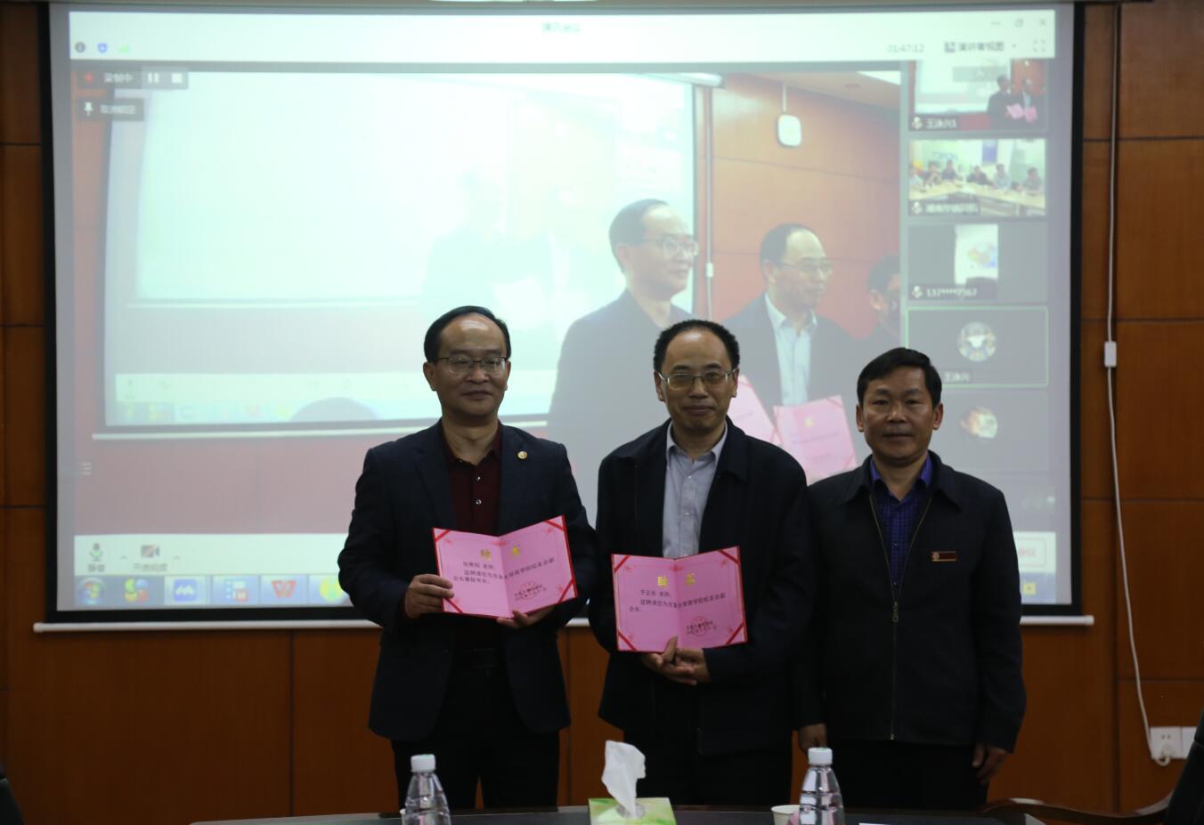 学院党委书记李启贵为新聘任的三位副会长颁发聘书。